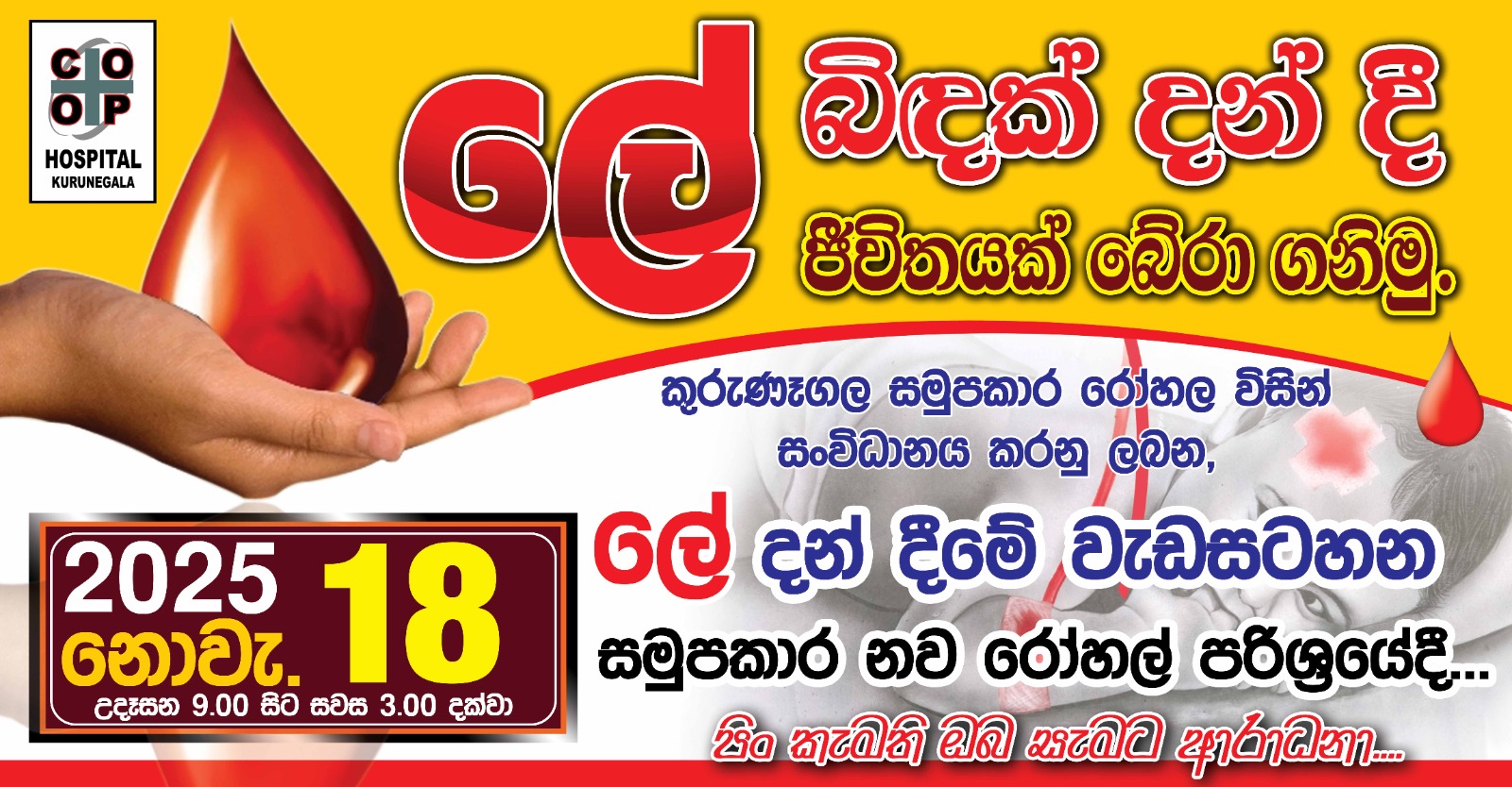 The 'මඤ්ඤොක්කා දන්සැල' organized by the Kurunegala Cooperative Hospital Society will be held on 14th...